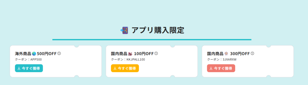 - クーポンコード:KKJPALL100(国内商品)※最低利用額 2,000円